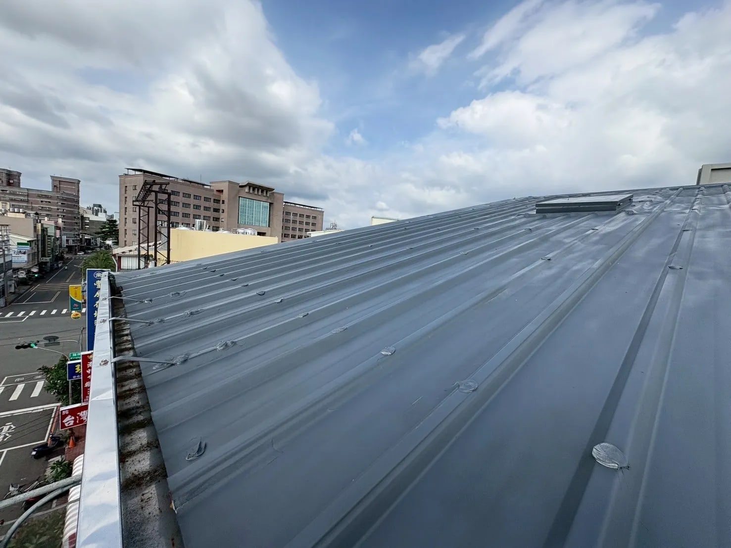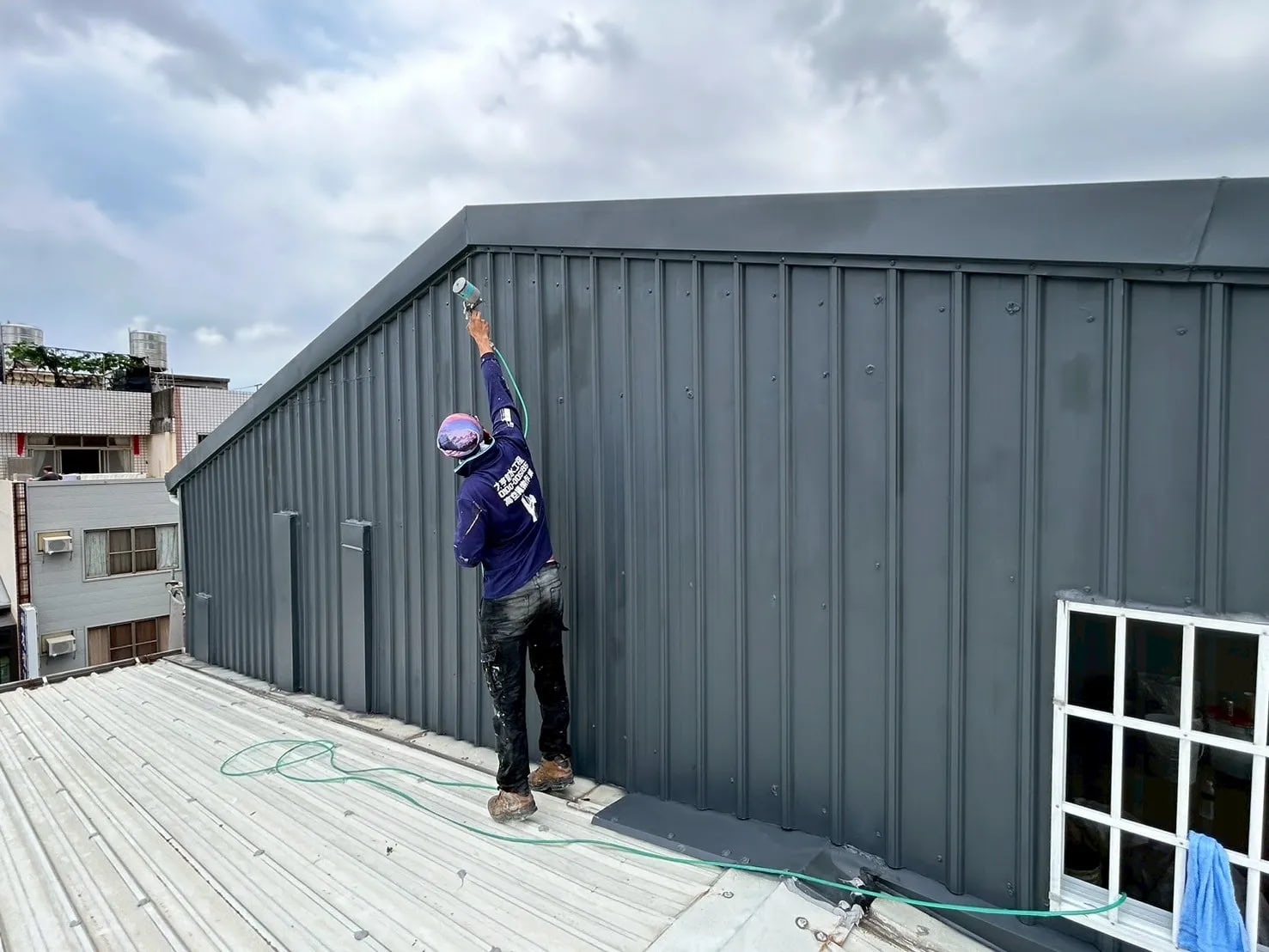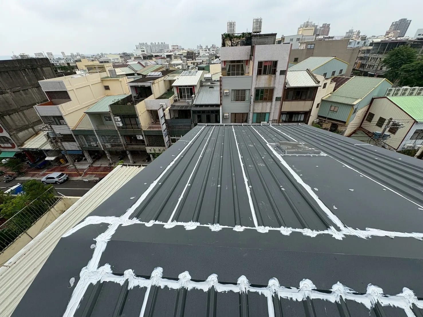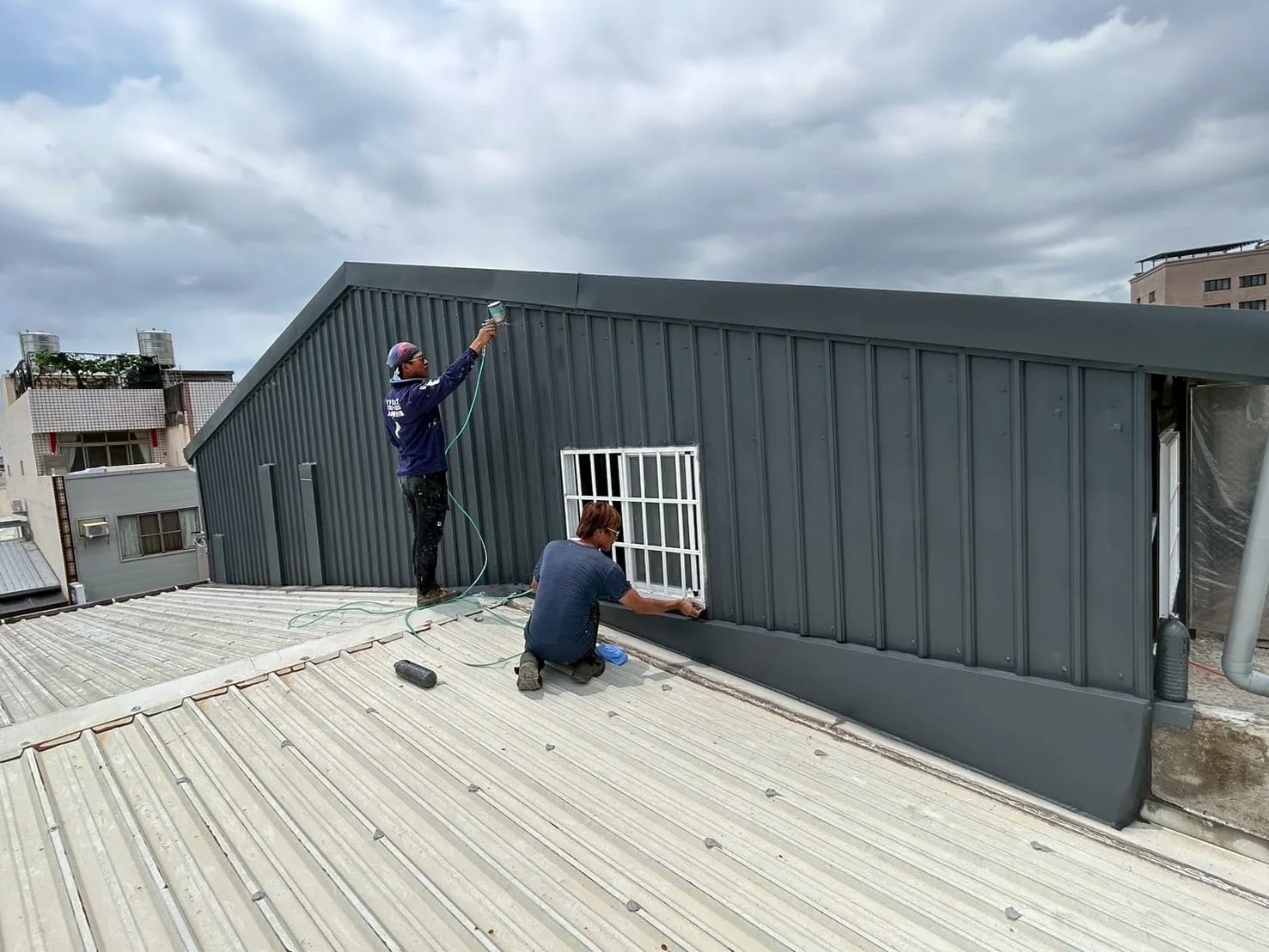 雨遮縫隙填補+整體上漆處理,提升防水效果並美化外觀,有效延長鐵皮使用壽命。