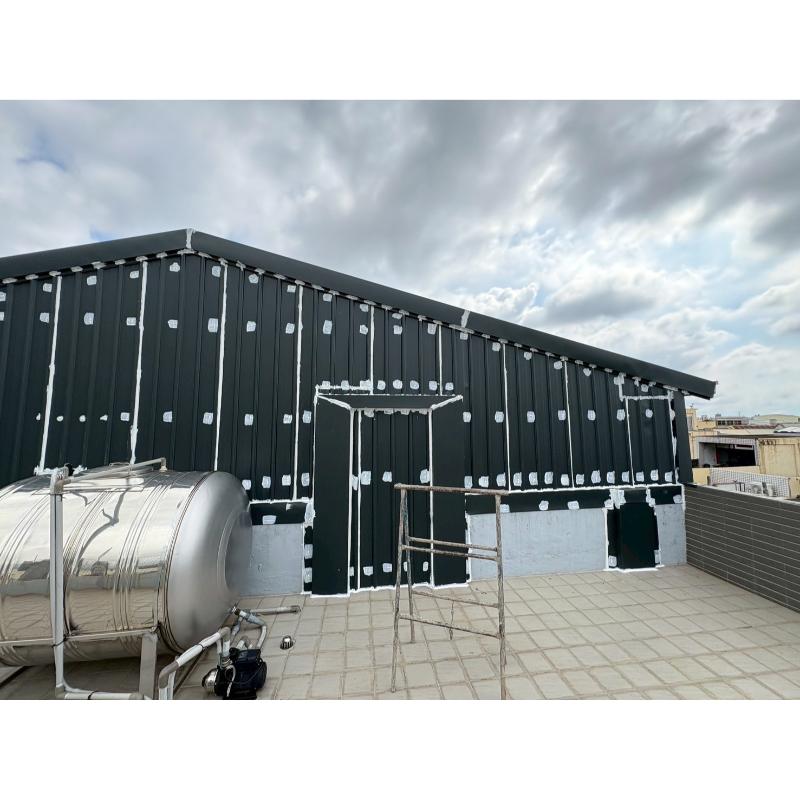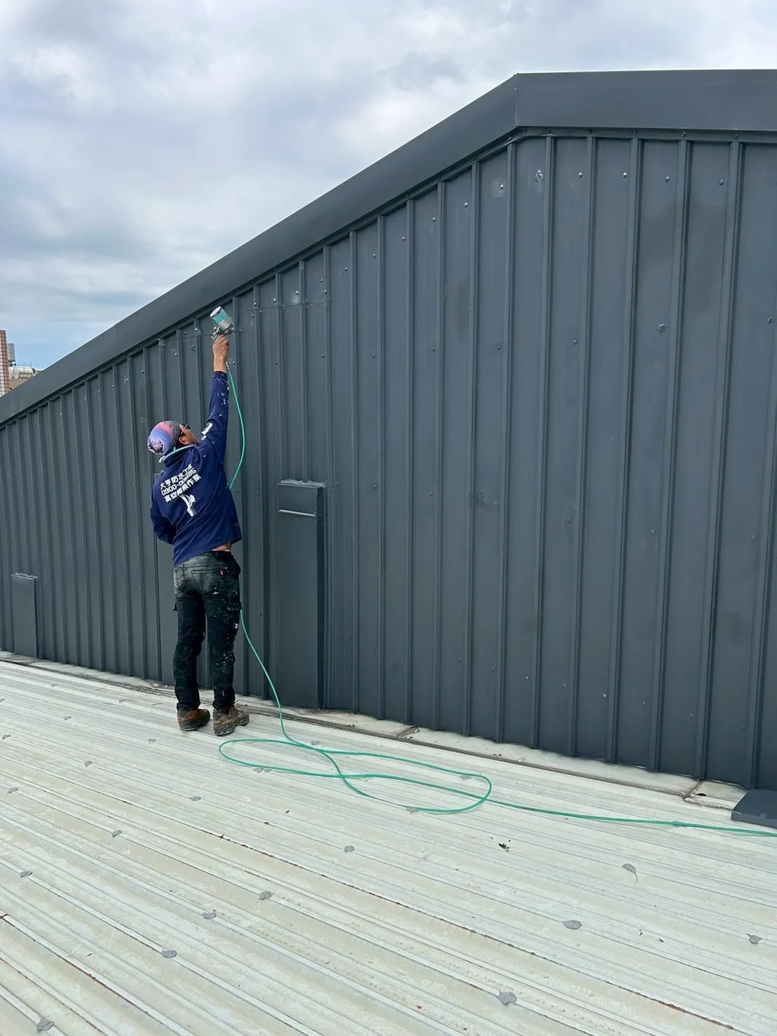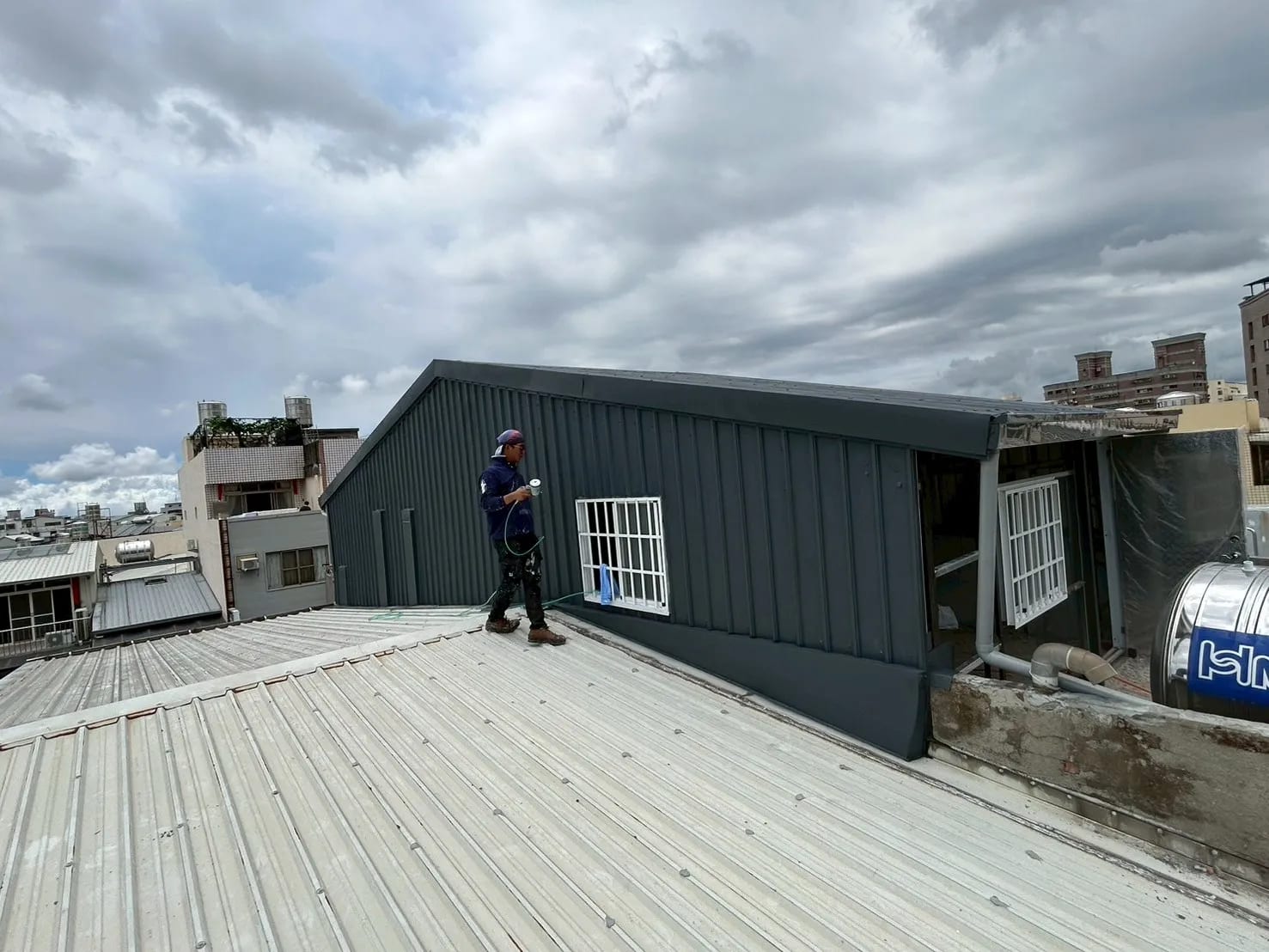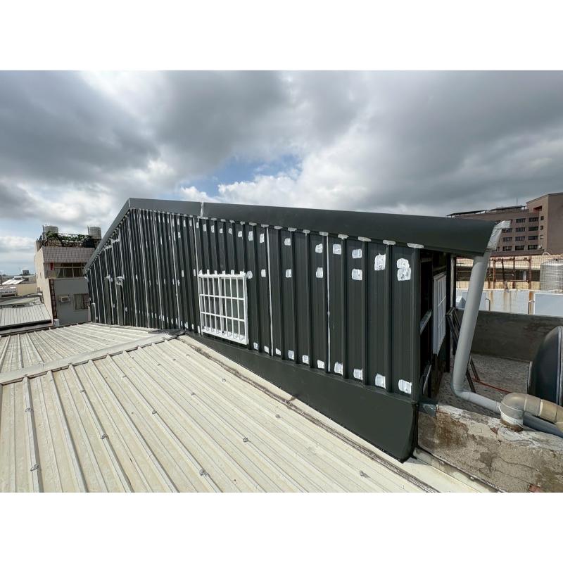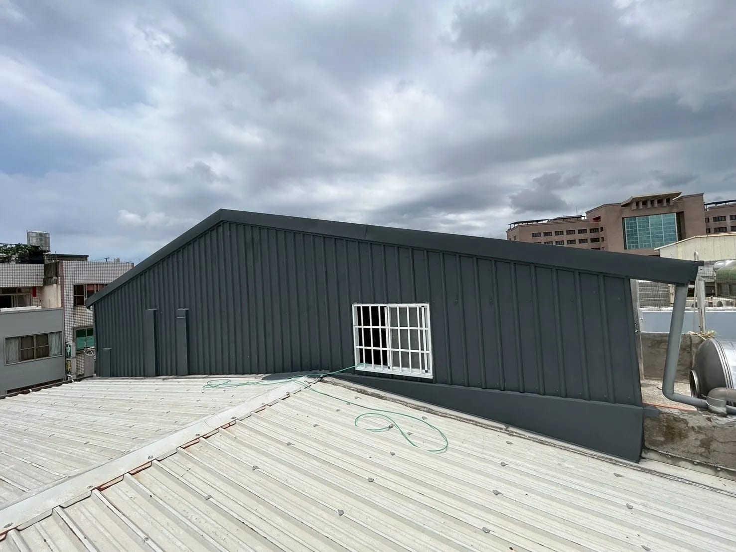 雨遮縫隙填補+整體上漆處理,提升防水效果並美化外觀,有效延長鐵皮使用壽命。