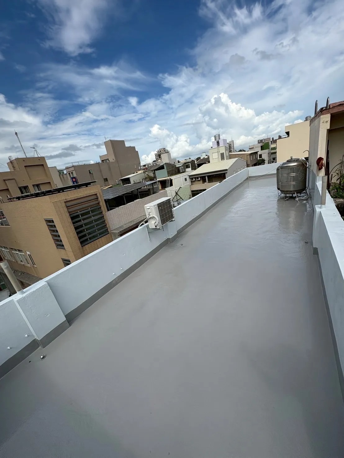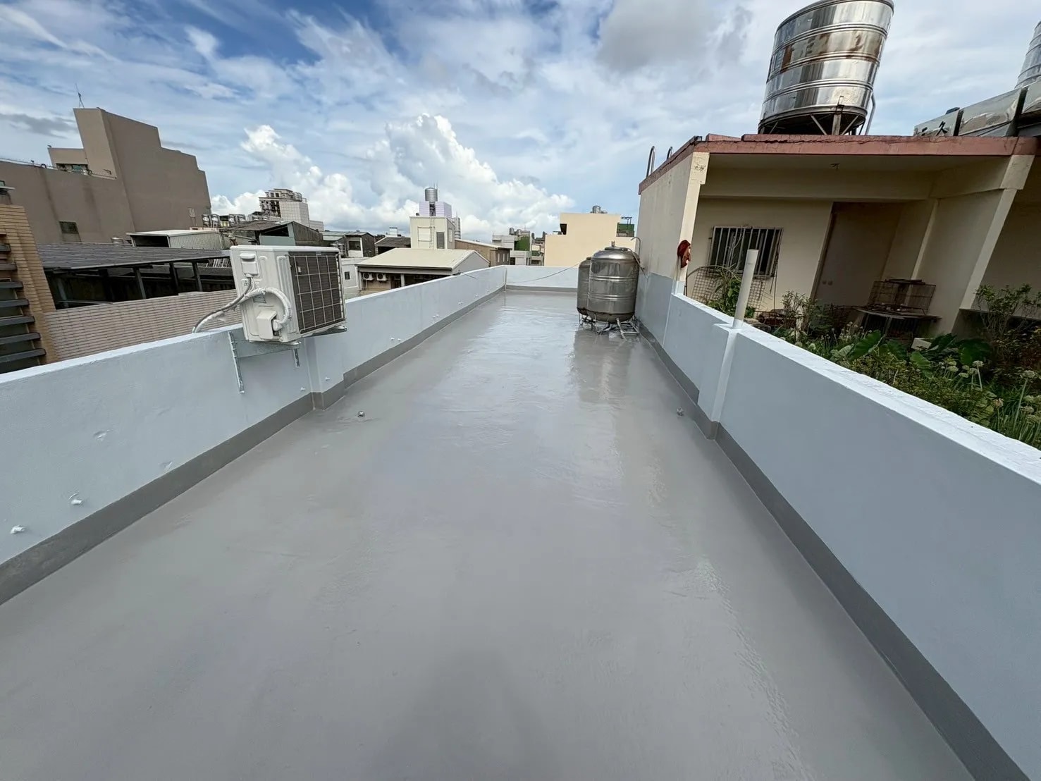 結合外牆與屋頂同步防水,選用高效能聚脲防水材,快速固化、超強耐候,全面強化建築防護力。