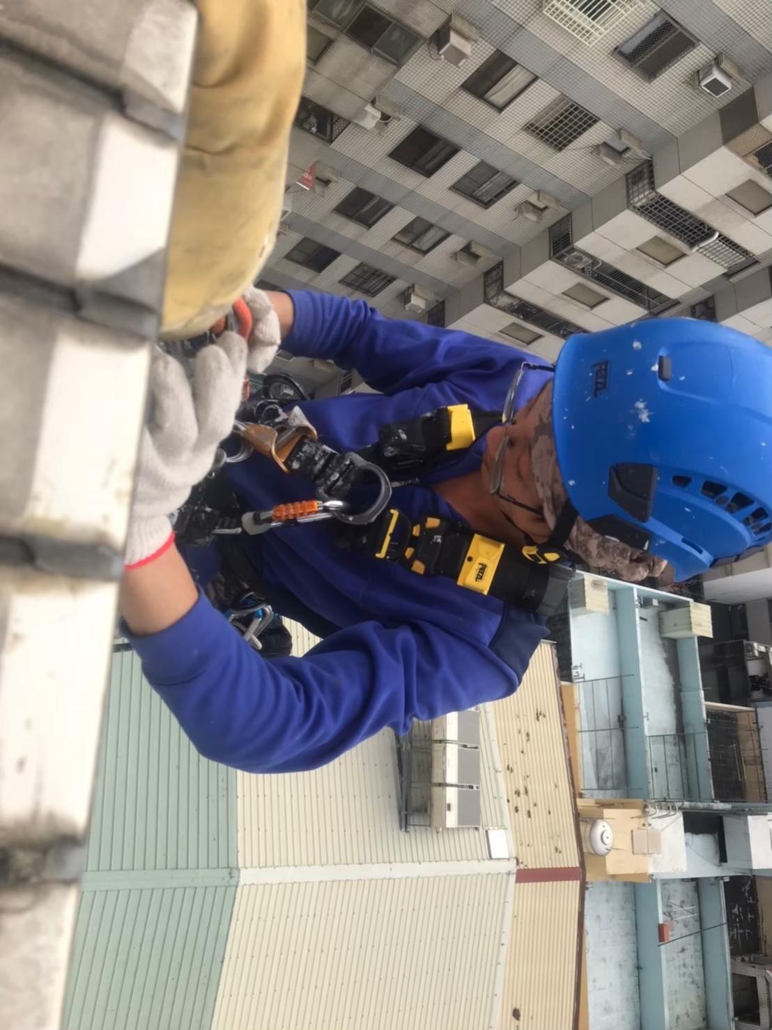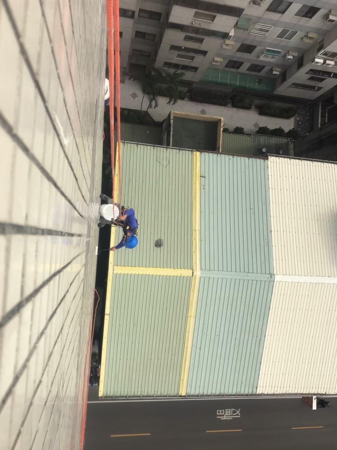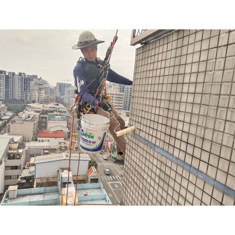 面對高樓外牆滲水問題,採專業高空繩索作業施作防水,確保每一寸牆面密合無漏,強化建物整體防護。