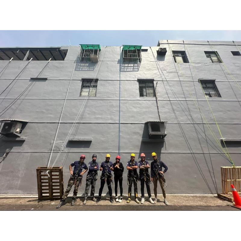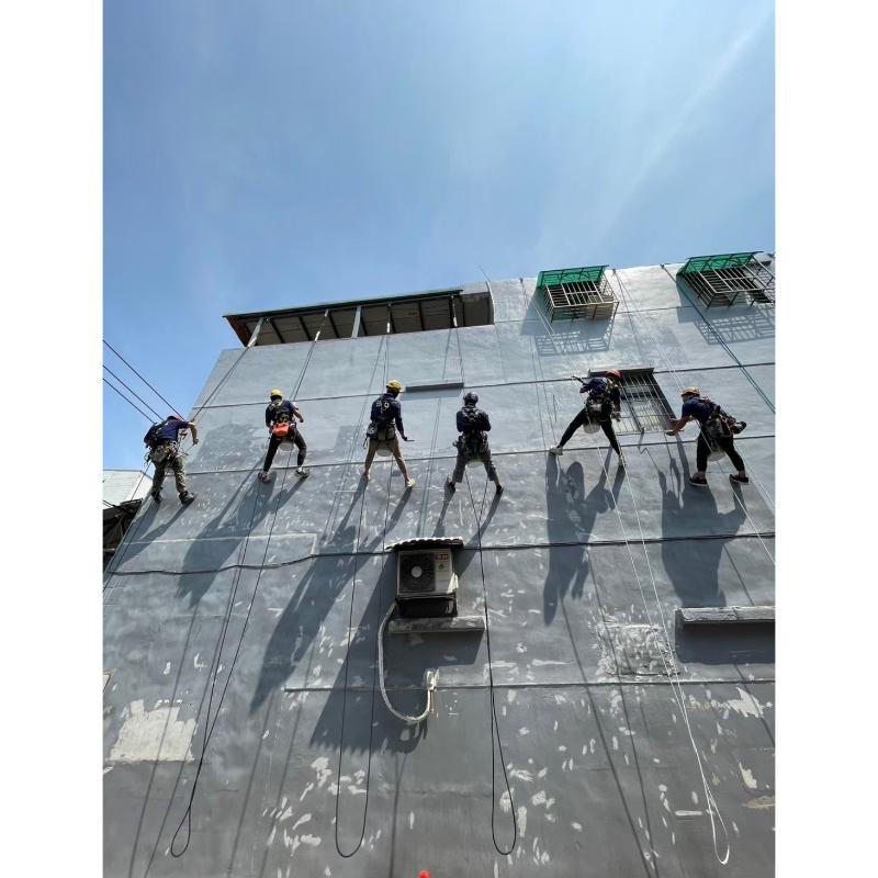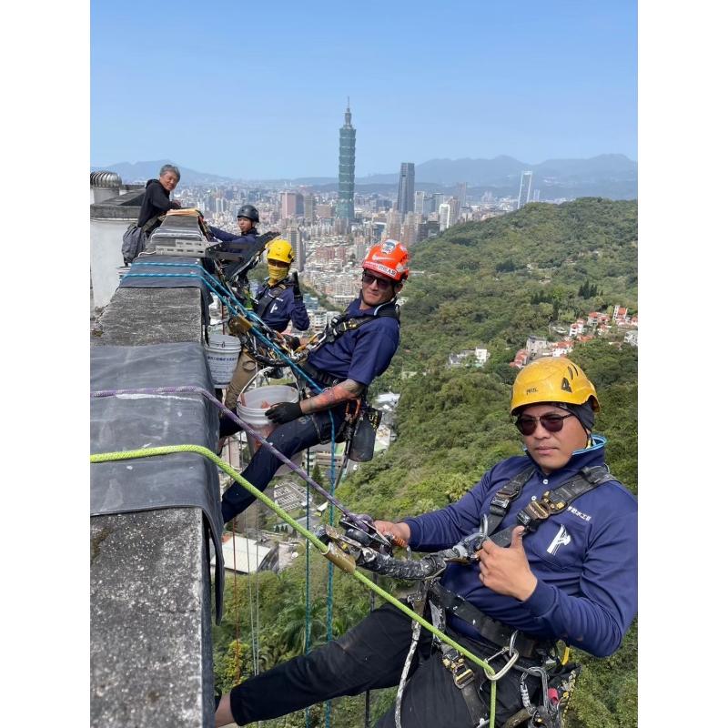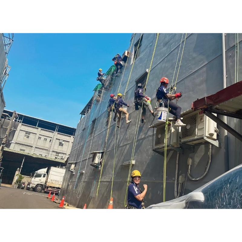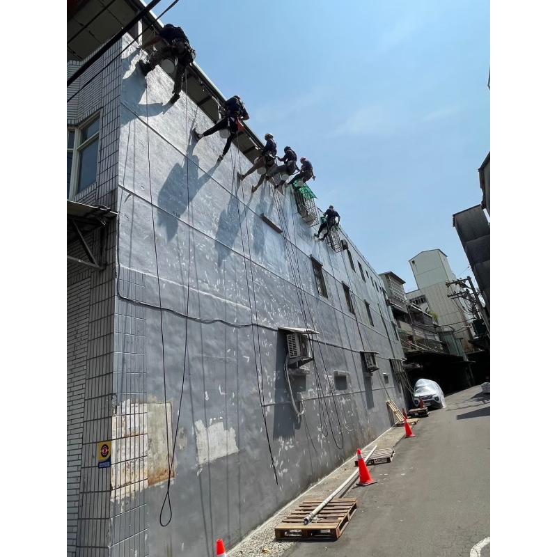 本案採用高空繩索垂降技術,針對高樓外牆細部進行防水施作,安全無鷹架、效率高、干擾低,全面強化建物防水保護力。